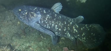Το ψάρι κοιλάκανθος στη θάλασσα της Νοτίου Αφρικής – Θεωρούνταν είδος εξαφανισμένο εδώ και 400 εκατομμύρια χρόνια! Coelacanth off Pumula on the KwaZulu-Natal South Coast, South Africa, on 22 November 2019 (photo: Bruce Henderson). Published under a Creative Commons Attribution Licence., CC BY 4.0, https://commons.wikimedia.org/w/index.php?curid=88732486 , Coelacanth - Wikipedia
